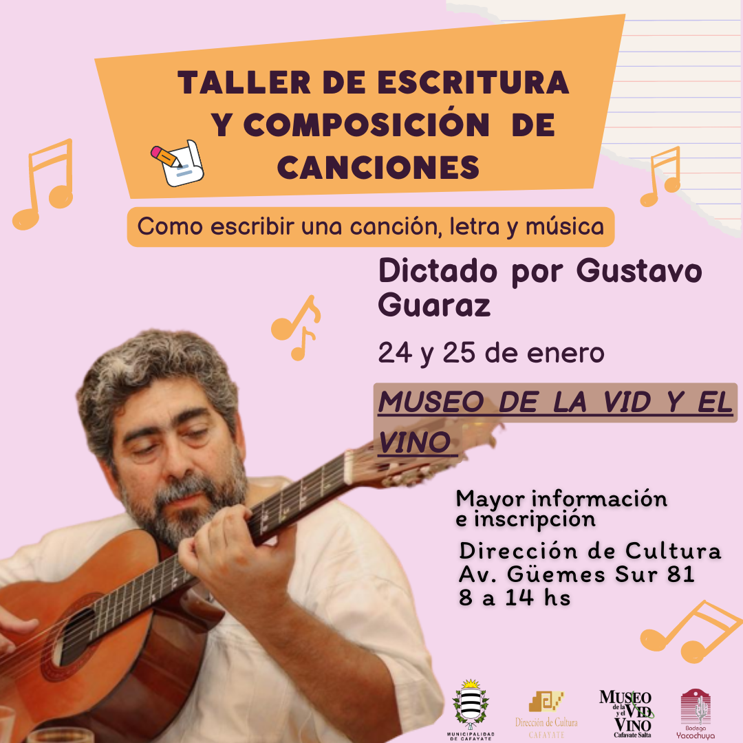 Será dictado por Gustavo Guaraz, autor y compositor tucumano. Un taller para conocer como escribir una canción, música y letra, destinado a todo el público en general.
