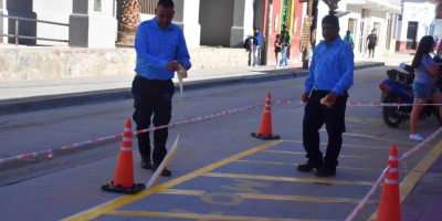 La Municipalidad realiza tarea de pintura en rampas y estacionamiento exclusivo para motos